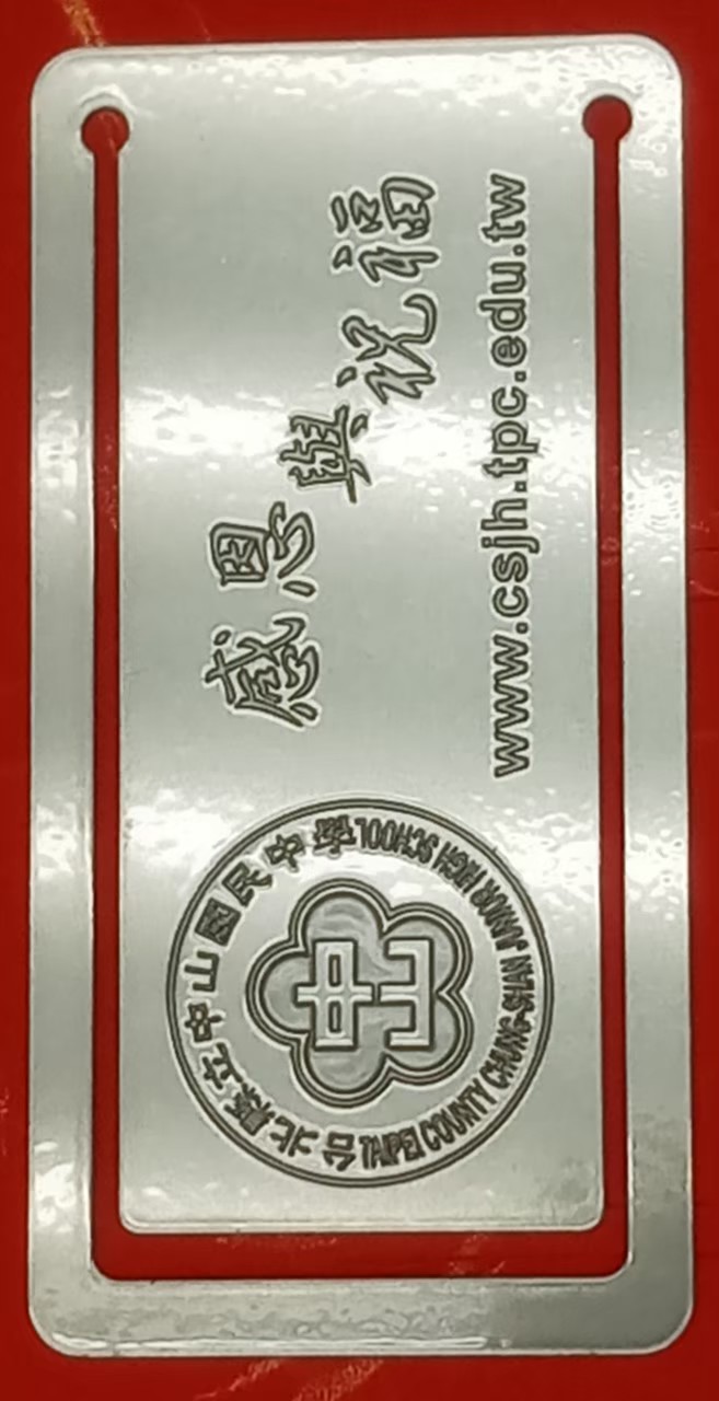 曾經生產過的紀念性金屬書籖包括:美國讀者文摘 · 花旗銀行 · 故宮博物院 · 台北市立美術館 · 古根漢 · 台灣大學 · 趨勢科技 · 政治大學 · 法鼓山 ·日本関西大學 · 行政院食安中心 · AUDI · 中正預校 · BMW · 耶穌愛你 · 士林官邸菊展 · 孔廟 · 觀光局 · 台北世大運 · 鐵路局永保安康…等